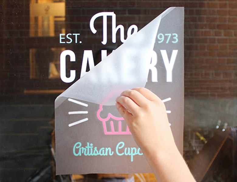 Cam gibi düz yüzeylere yapıştırılan plastik bazlı etiket grubu arasında yer alır. Beyaz baskı üzerine ters baskı yapılmasıyla üretilir.